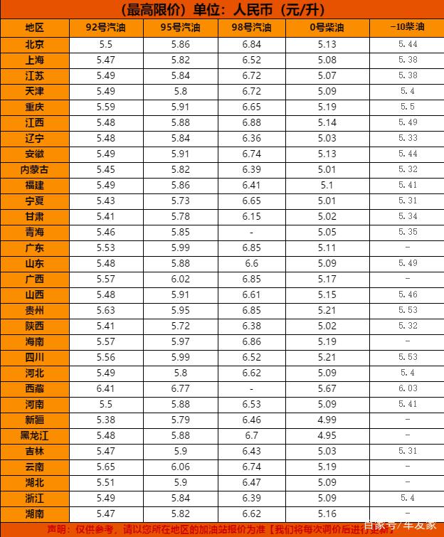 最后,了解全國(guó)各地成品油最高限價(jià)。